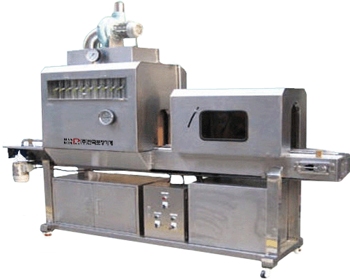 HKT-2522 Steam Value 30kg/h Steam Pressure 5kg/cm2 0.5Mpa Shrink Tunnel Size 800(L) x 660(W) x 650(H)mm Steam Nozzle 22 set's Products Capacity 30-50 Bottle/min(Max) M/C Demension 2400(W) x 700(L) x 1950(H)mm Blower Input Power AC 220/380V 60Hz 3ø 2.8KW Blower Pressure 3000mmH20 Weight 150kg Electric Boiler AC220/380V 60Hz 30 30KW Other 급수, 배수 및 배기설비 별도 HKT-3522 Steam Value 40kg/h Steam Pressure 5kg/cm2 0.5Mpa Shrink Tunnel Size 1000(L) x 660(W) x 650(H)mm Steam Nozzle 24 set's Products Capacity 40-100 Bottle/min(Max) M/C Demension 2900(W) x 700(L) x 1950(H)mm Blower Input Power AC 220/380V 60Hz 3ø 2.8KW Blower Pressure 3000mmH20 Weight 200kg Electric Boiler AC220/380V 60Hz 3ø 40KW Other 급수, 배수 및 배기설비 별도
